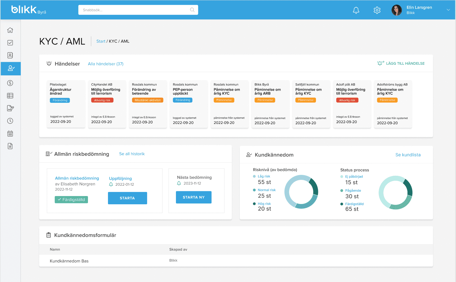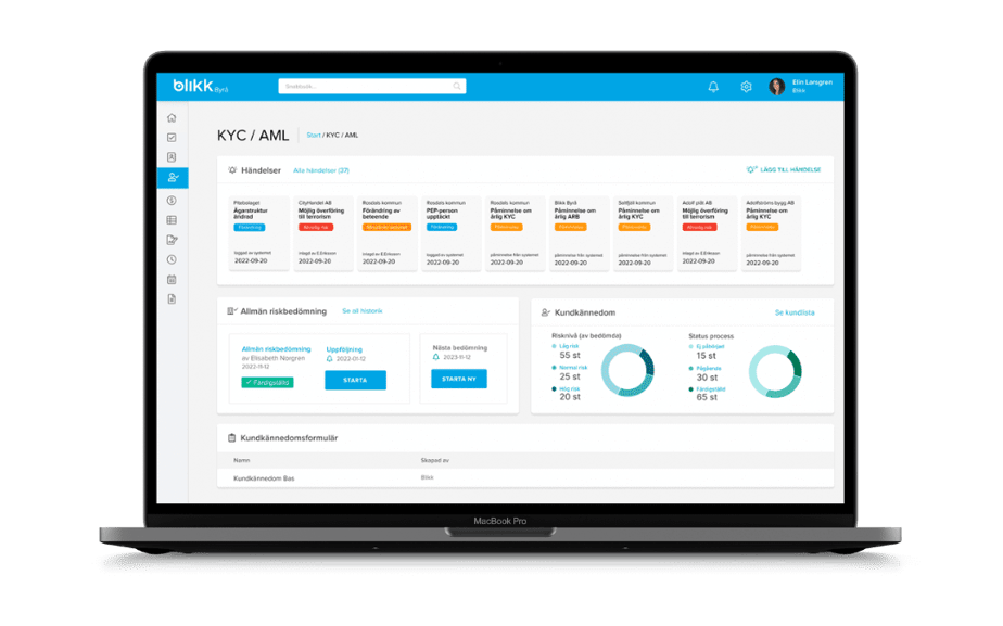 Tusentals svenska redovisningsbyråer omfattas av penningtvättslagen, som ställer krav på att det ska finnas rutiner för att uppnå kundkännedom. Under hösten 2023 planerar Blikk att lansera en molnbaserad lösning som hjälper redovisningsbyråer att uppnå kundkännedom och leva upp till kraven i penningtvättslagen!