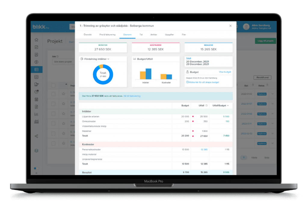 Med budgeten får du en tydlig överblick över förväntat resultat. När arbetet väl är igång kan du följa utfallet i realtid. Det innebär att du snabbt kan agera och vidta åtgärder om budgeten riskerar att överskridas.